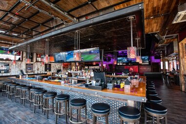 And yes it s a real bar complete with beer and cider taps a growler station fire pits and even a children s play area.