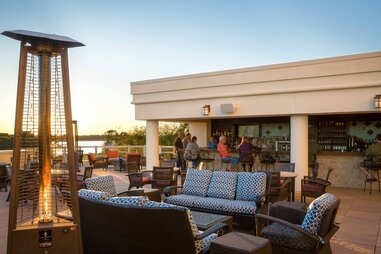 The roof offers salem s only rooftop bar and restaurant serving the necessities strong drinks and simple food.